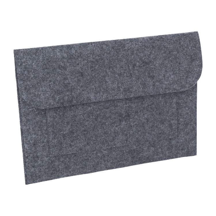 Pochette en feutre rPET de 3 mm d'épaisseur avec poche frontale et fermeture velcro.