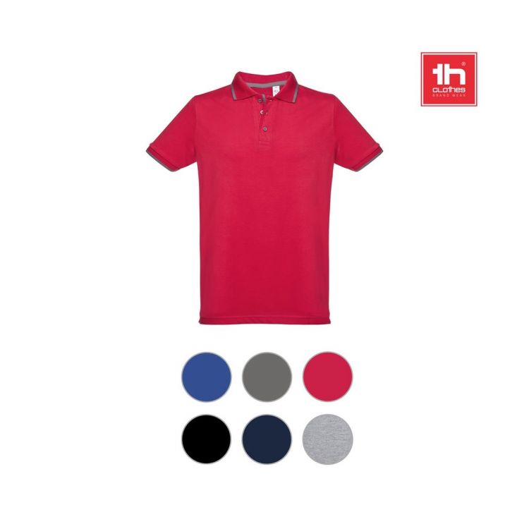Polo pour homme à manches courtes bicolore en maille piquée 100% coton (210 g/m²) (couleur 183 : 85% coton/15% viscose). Contraste bicolore sur le col, les manches et la patte de boutonnage. Contient un col et des manches côtelés. Patte de boutonnage renforcée avec 3 boutons de couleur contrastée (bouton de remplacement inséré dans la couture intérieure). Pièce slim fit avec de petites ouvertures latérales au bas