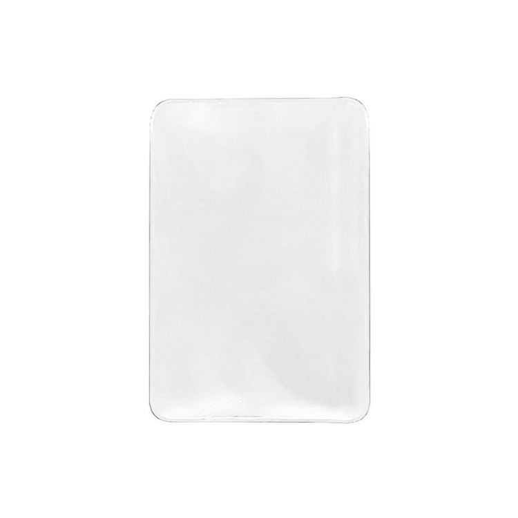 Enveloppe double porte-cartes avec ouverture sur le petit côté pour l'insertion des cartes, composée d'une pochette de chaque côté, en PVC transparent.