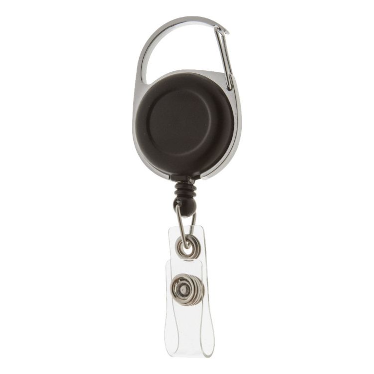 Porte-cartes en plastique et métal avec fermeture élastique et mousqueton, de couleur noir