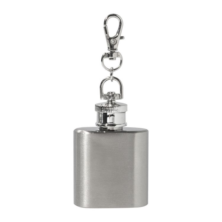 Mini flasque en acier inoxydable recyclé avec porte-clés mousqueton. 30 ml