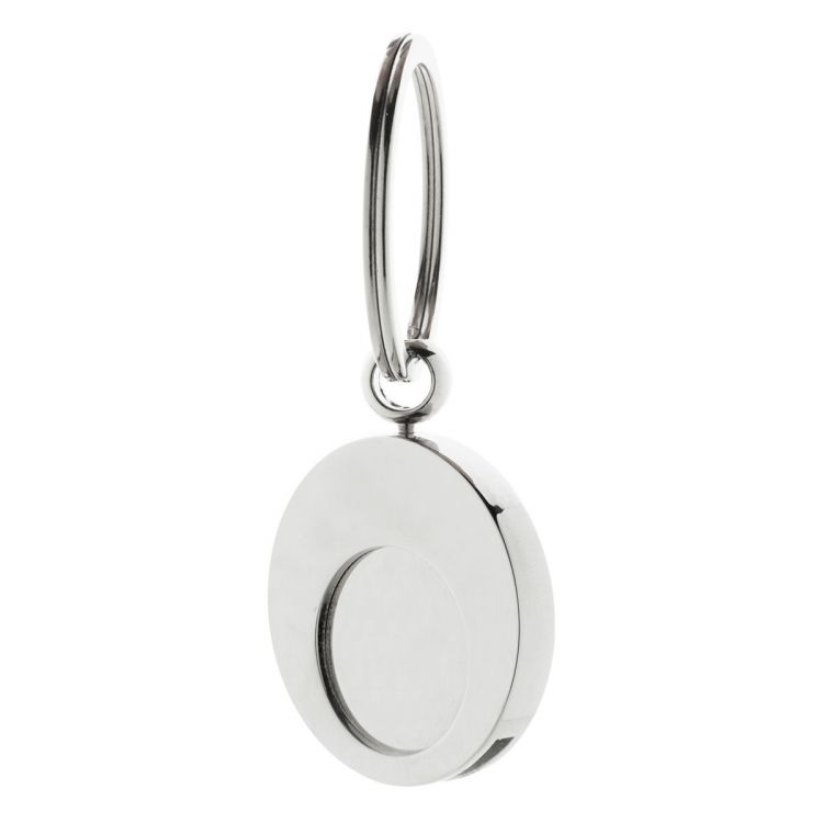 Porte-clés en métal de forme ronde avec jeton pour chariot de courses. Livré dans une boîte en papier kraft