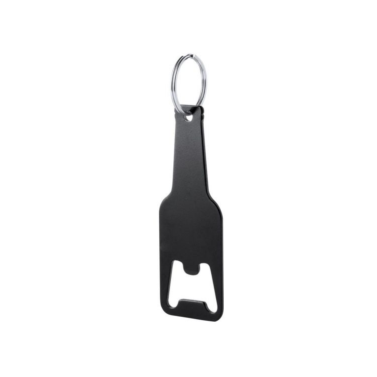 Porte-clés décapsuleur en aluminium en forme de bouteille et disponible en divers couleurs métalliques brillantes. Spécialement conçu pour un marquage laser.