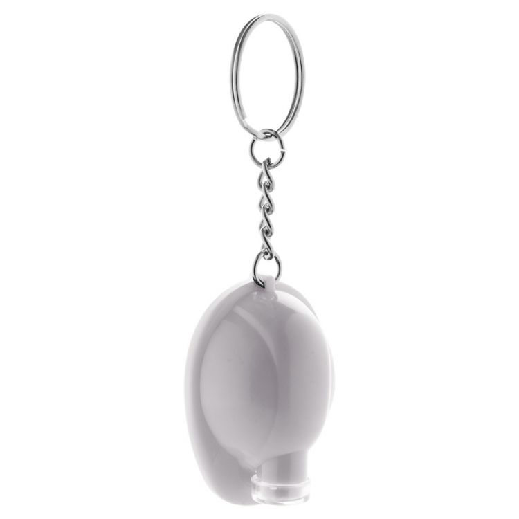 Porte-clés en plastique en forme de casque de sécurité avec petite lampe LED. Livré avec une pile bouton.