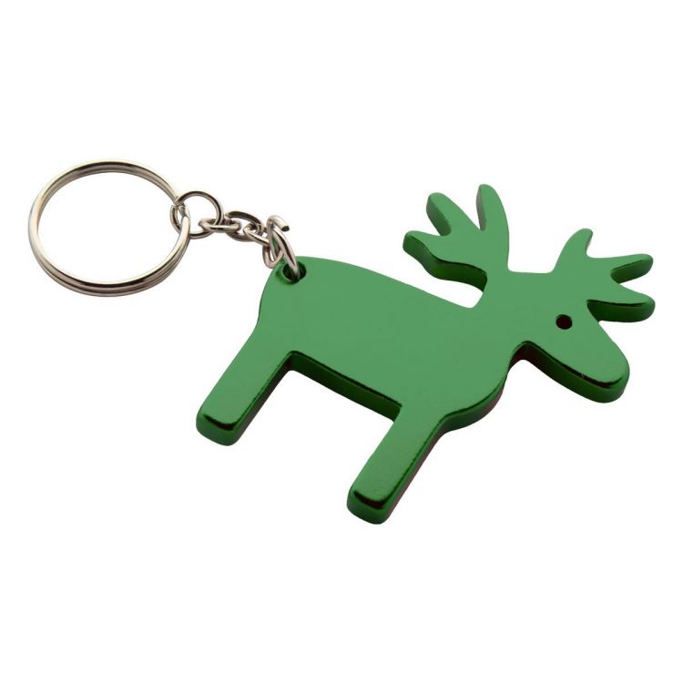 Porte-clés ouvre-bouteille en aluminium en forme de renne, de couleur vert