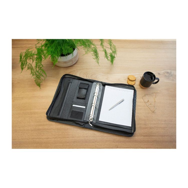 Porte-documents classeur A4 zippé en cuir reconstitué (synderme) livré avec bloc-notes, sans stylo.