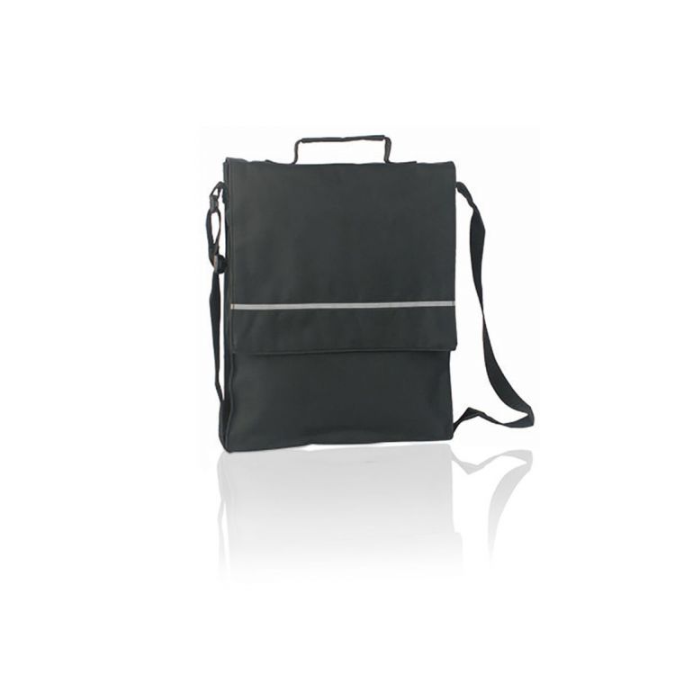 Sacoche porte-documents en polyester 600D de couleur vive avec bande réfléchissante à l´avant. Rabat avec fermeture Velcro. Poignée renforcée assortie, bandoulière réglable et compartiments intérieurs avec étuis pour stylos et smartphone.
