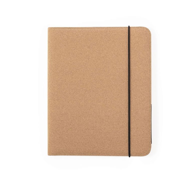 Classeur élégant en liège naturel. Avec grande poche intérieure pour feuilles, 4 porte-cartes, élastique pour stylo à bille et bloc à 20 feuilles à lignes. Fermeture par une bande élastique à l’extérieur. Présenté individuellement dans un sac recyclé. Élaboré à partir d’éléments végétaux pour encourager l’utilisation de matières premières naturelles et réduire les émissions polluantes. (couleur naturel)