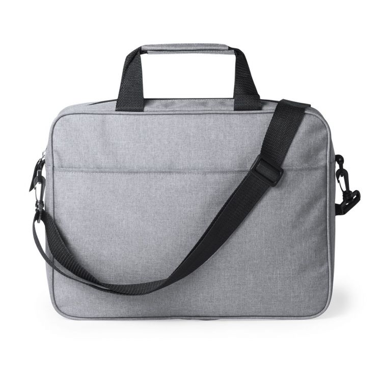 Elégant porte documents zippé gris en polyester 600D. Avec poche extérieure à fermeture velcro, poignées renforcées confortables, bandoulière réglable avec fermeture par mousqueton et accessoire à l´arrière pour fixation à la barre de trolley. (couleur naturel)