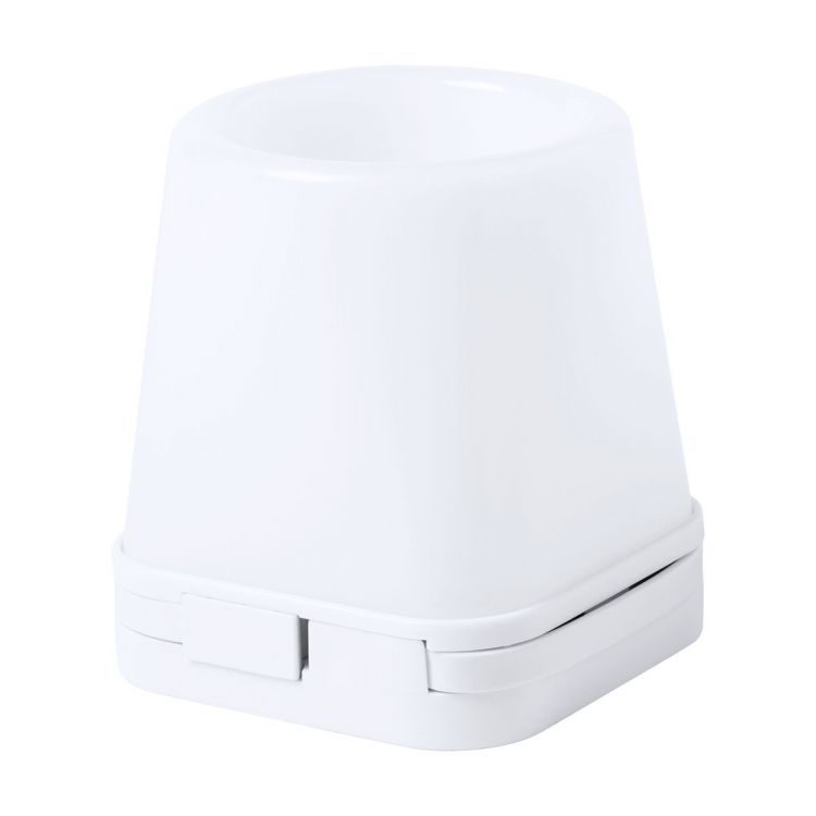 Pot à crayons en plastique avec USB hub 4 ports. Support téléphone portable intégré et 4 lampes LED. USB 2.0, de couleur blanche