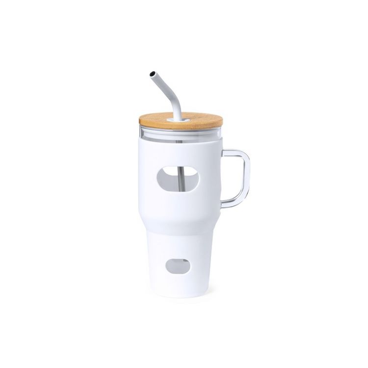 Pot de grande capacité (1,1 l) avec un corps en verre résistant, qui offre une résistance et une durabilité exceptionnelles, prolongeant sa durée de vie et pouvant être réutilisé d'innombrables fois. Comprend une poignée pour un transport confortable et une housse de protection en silicone souple. Couvercle à pression en bambou, avec un trou pour une paille, et une paille en acier inoxydable réutilisable, avec un embout enduit de silicone pour profiter des boissons confortablement et en toute sécurité.Présenté dans une boîte design kraft individuelle. (couleur blanche)