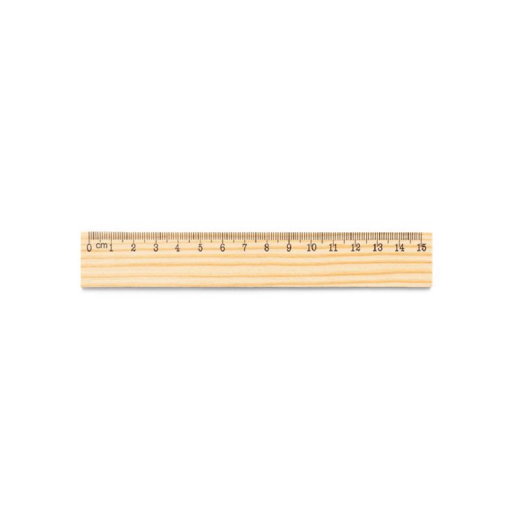 Règle en bois de pin avec échelle graduée de 15 cm imprimée en noir. Le produit étant fabriqué à partir de matériaux naturels, la couleur du produit ainsi que le résultat de l'impression peuvent varier d'un produit à l'autre. Produit en couleur naturel