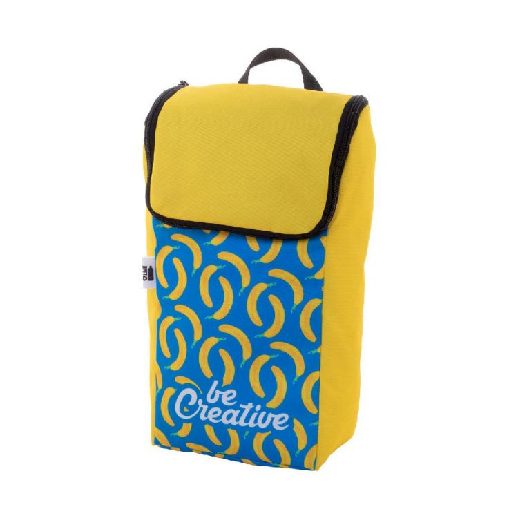 Sac à chaussures zippé personnalisable en polyester 600D RPET avec anse. Impression en sublimation sur toute la surface et labélisé RPET. Quantité minimale : 25 pièces.