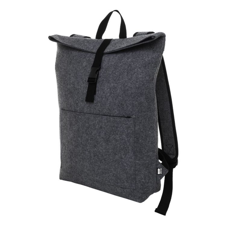 Sac à dos en feutrine RPET avec compartiment principal à fermeture à boucle et poche avant zippée, compartiment pour ordinateur portable (15") et bretelles rembourrées. Labélisé RPET