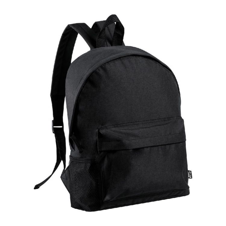 Sac à dos avec poche avant zippée, poche latérale filet, dos et bretelles rembourrés. En polyester 600D RPET. Labélisé RPET.