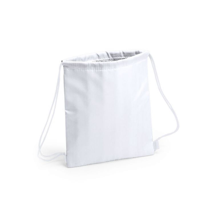 Sac à dos isotherme à cordon pour enfants en polyester 210D doux, aux couleurs gaies et dans une large gamme de tons. Avec cordes noires à fermeture automatique et coins renforcés. Intérieur isotherme en finition aluminium.