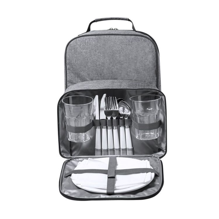Sac à dos glacière de pique-nique Nature line, fabriqué en RPET 600D durable et de haute qualité, produit à partir de plastique recyclé pour encourager la réutilisation des déchets plastiques et contribuer à la durabilité de la planète. Idéal pour 2 personnes, avec une poche séparée pour un rangement sûr. Comprend 2 verres, 2 couteaux, 2 cuillères, 2 fourchettes, 2 assiettes et 2 serviettes. Compartiment réfrigérant avec intérieur en PEVA et poignée de transport confortable. Sangles et dos rembourrés. Distinction RPET sur l'étiquette. (couleur gris)