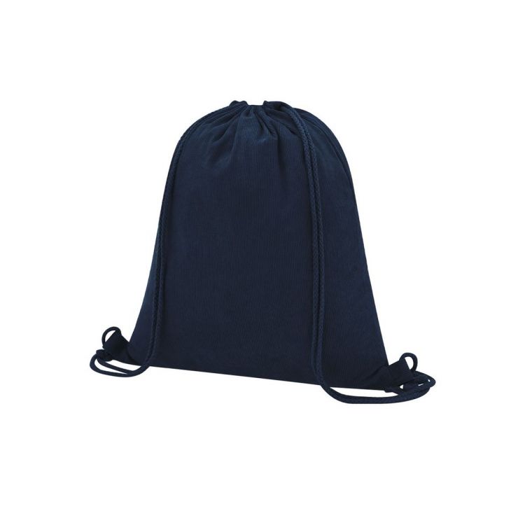 Sac à dos à cordes en velours côtelé de polyester résistant. Fini cousu, avec cordes assorties et renforts latéraux. Disponible dans une gamme de couleurs variées.