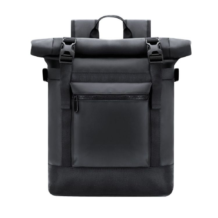 Sac à dos fabriqué en PVC souple, avec système de fermeture enroulable et boucles. Il dispose d’une poche zippée. L’intérieur spacieux comprend un compartiment rembourré pour ordinateur portable jusqu’à 15 pouces et tablette jusqu’à 10 pouces. Les sangles latérales réglables permettent de compacter le volume selon les besoins. Bretelles en PU et dos rembourré pour un confort optimal. Une sangle arrière permet de le fixer à un trolley ou à une valise, idéal pour les voyages et les déplacements. (couleur noir)