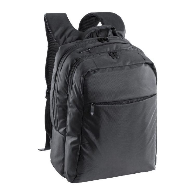 Sac à dos avec plusieurs compartiments zippés. Bandoulières rembourrées et compartiment pour ordinateur portable (15"). Nylon 600D.