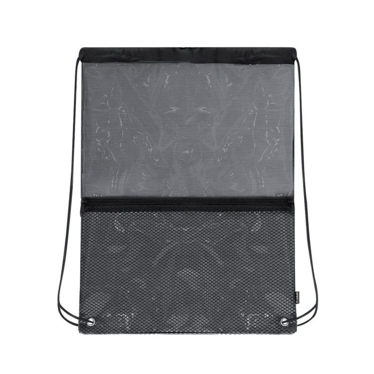 Sac à cordon en RPET, avec un compartiment principal au design transparent. Il dispose de cordes de fermeture automatique et d'angles renforcés avec des anneaux métalliques résistants. Comprend une poche frontale en maille pratique avec fermeture éclair. Inclut un badge RPET sur l'étiquette latérale.Le matériau RPET est fabriqué à partir de plastique recyclé, pour promouvoir la réutilisation des déchets plastiques et aider à la durabilité de la planète. (couleur noir)