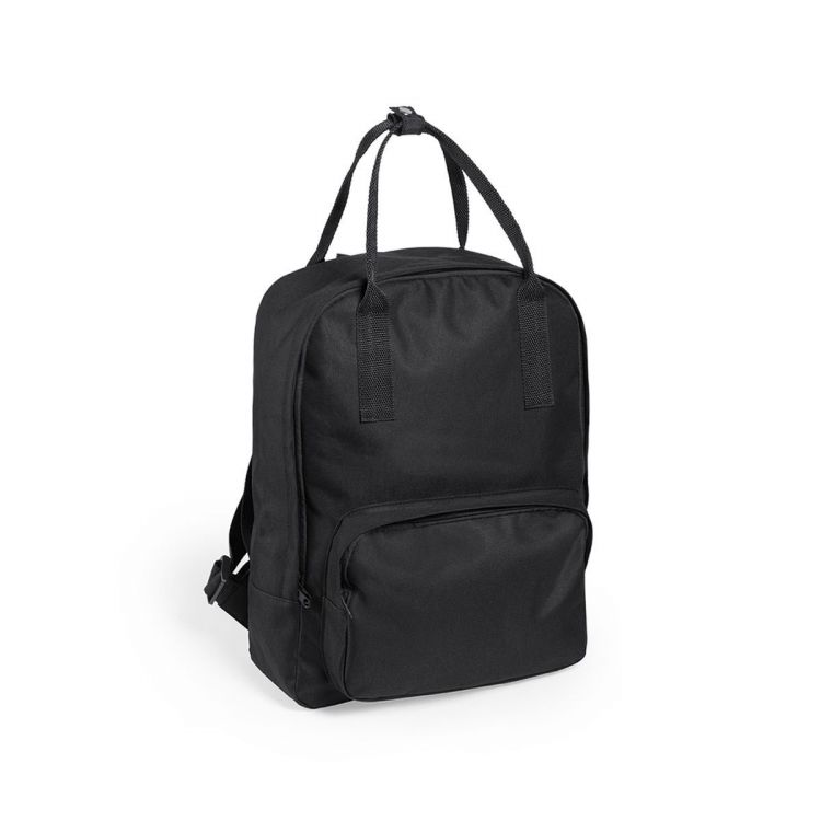 Sac à dos en polyester 600D polyester au design urbain décontracté, avec poignées résistantes assorties, fermeture zippée et poche frontale.