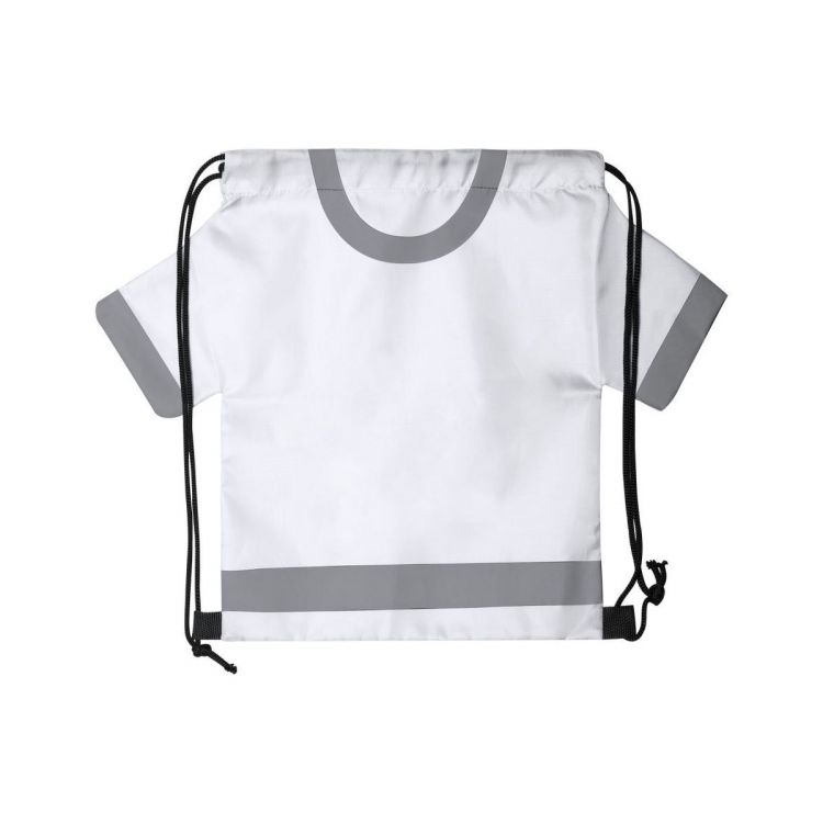 Sac à dos à cordelette pour enfants en forme de tee-shirt. En polyester 210T, avec cordelettes réglables de couleur noire et coins renforcés. Disponible dans une large gamme de couleurs.
