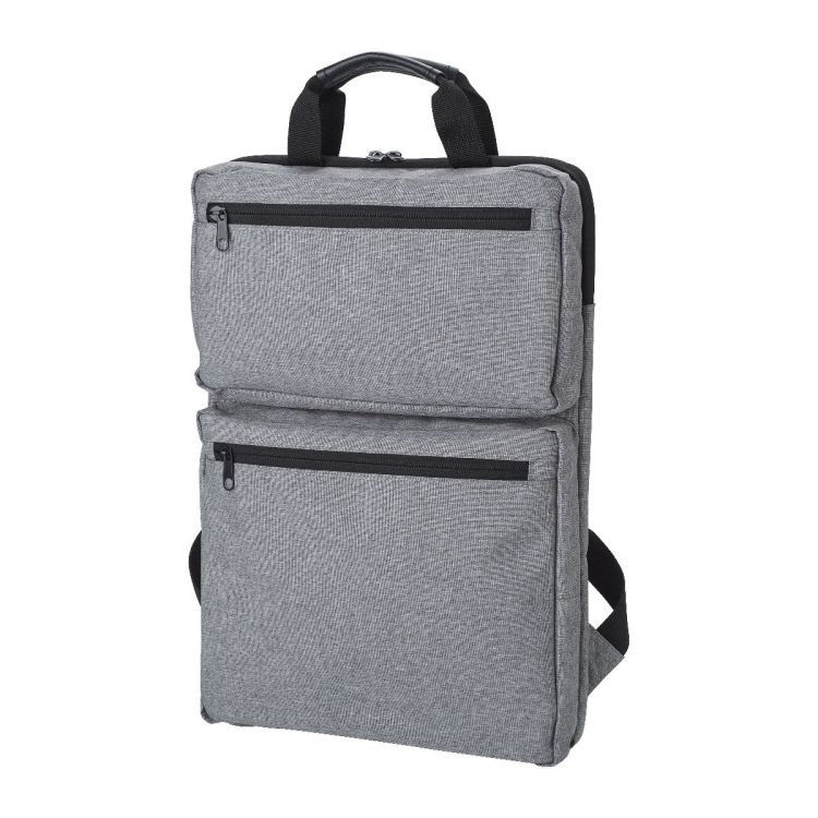 Sac à dos porte-ordinateur de 15'' en polycanvas 300D avec 2 poches frontales zippées et double poignée.