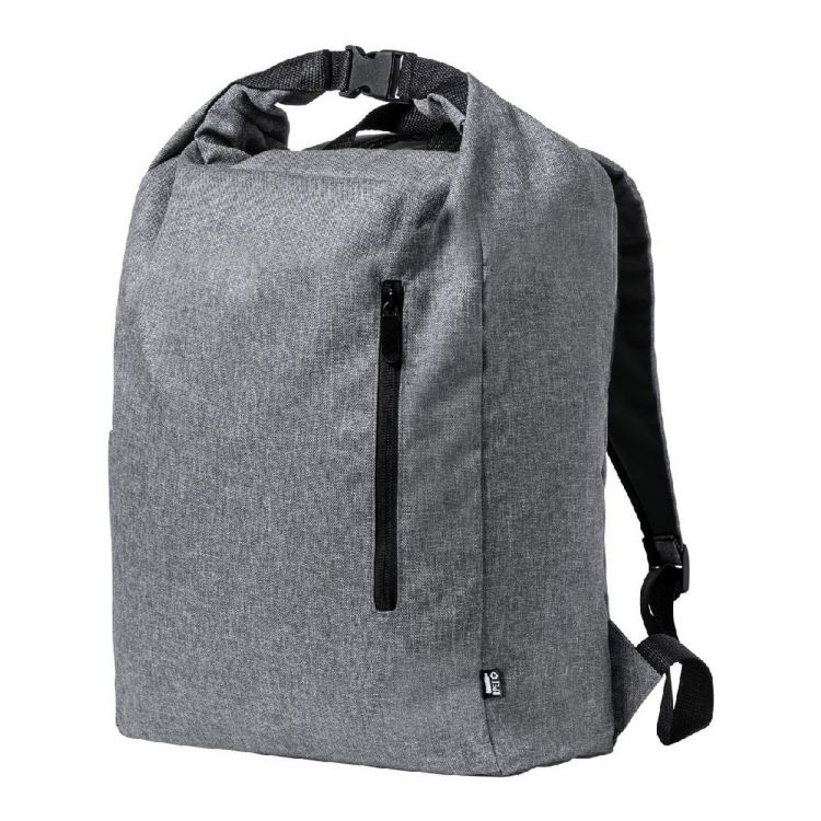 Sac à dos roll-top imperméable en RPET avec poche latérale, poche frontale zippée, dos et bretelles rembourrés. Avec étiquette RPET distincte. Polyester 300D RPET.