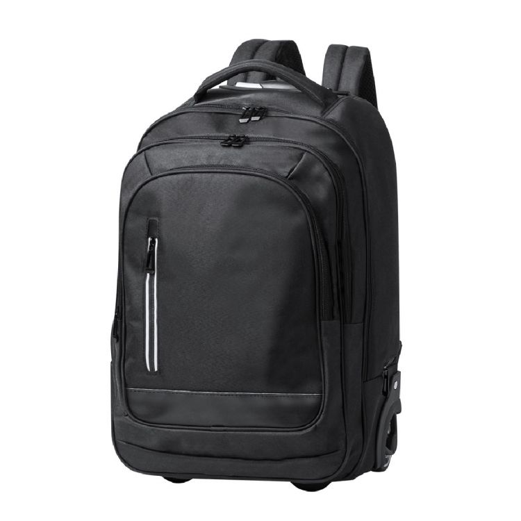 Sac à dos à 2 roues en polyester 300D de haute qualité. Comprend un compartiment intérieur rembourré pour les ordinateurs portables jusqu'à 15 pouces. Avec poignée extérieure renforcée assortie et poches avant pratiques. Avec des zips assortis, plus des bretelles rembourrées et cachées à l'arrière, à utiliser comme sac à dos. Présenté dans un sac recyclé individuel.
