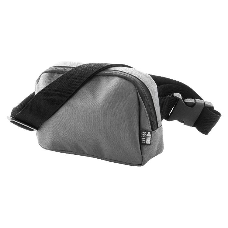 Sac banane imperméable en RPET avec 2 compartiments zippés, poches intérieures en filet et bandoulière réglable. Polyester RPET 600D avec une couche en PU et labélisé RPET.