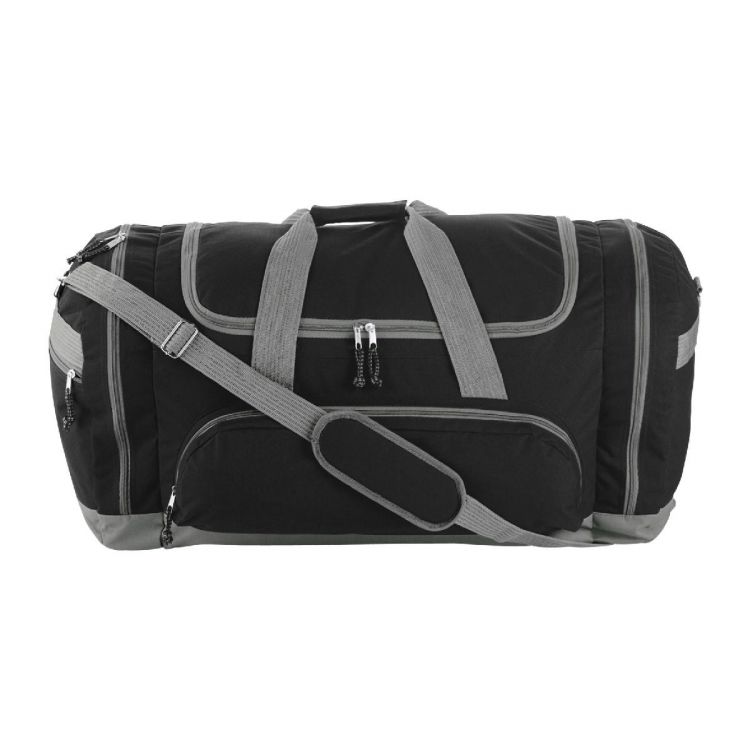 Sac de sport en polyester 600D avec bandoulière, muni d'une poche frontale et de 3 latérales.