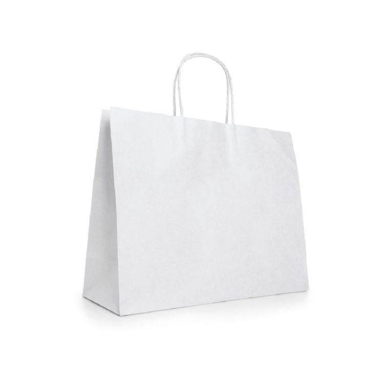 Sac en papier kraft (100g/m²)avec anses torsadées. Fabriqué en Europe. Produit en couleur blanche