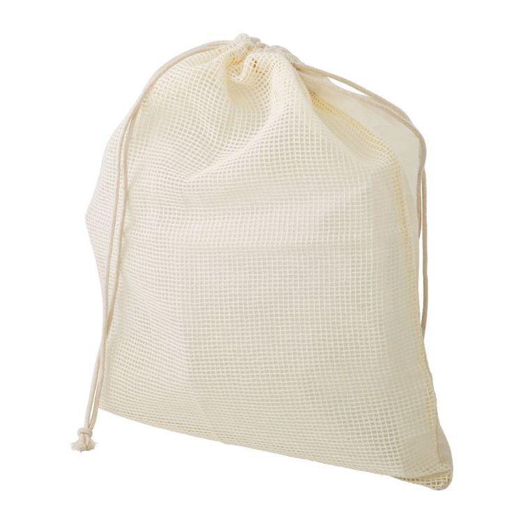 Sac filet en coton bio pour fruits et légumes avec cordon de serrage.