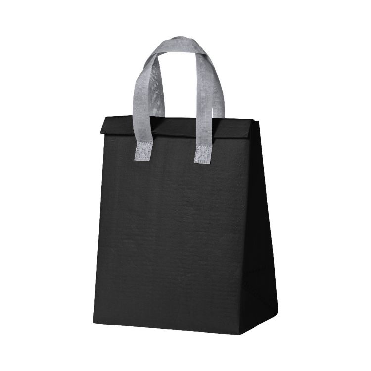 Sac isotherme en non-tissé laminé avec poignées, fermeture velcro et rembourrage en aluminium, de couleur noir