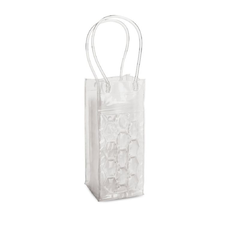 Sac isotherme pour 1 bouteille en PVC avec anses de 35 cm. Produit en couleur blanc transparent