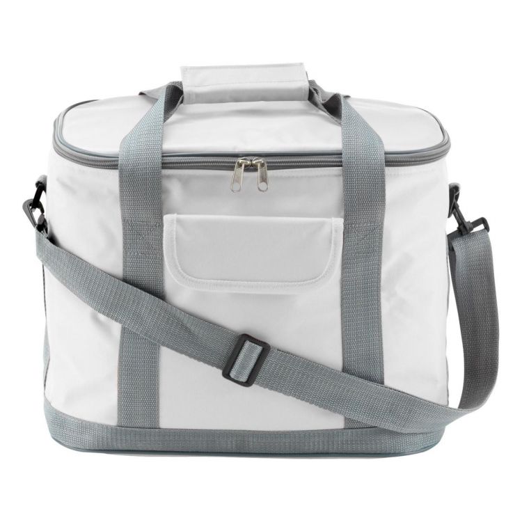 Sac isotherme zippé en polyester 420D avec poche frontale et bandoulière.