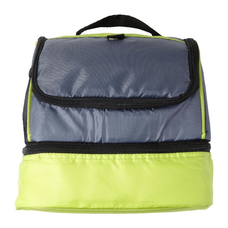 Sac isotherme double compartimenté en polyester 210D et poche latérale filet.