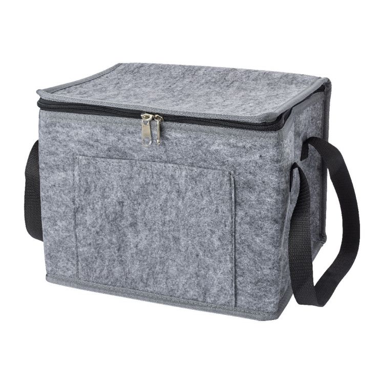 Sac isotherme en feutre rPET avec poche frontale.
