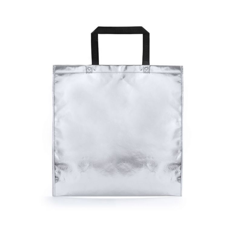 Sac en intissé laminé finition métallique. Disponible en couleurs or, argent et or rose. Anses renforcées de 42 cm de long. Finition thermosoudée, avec soufflet et liserés renforcés. Résistance au poids jusqu´à 7 kg.