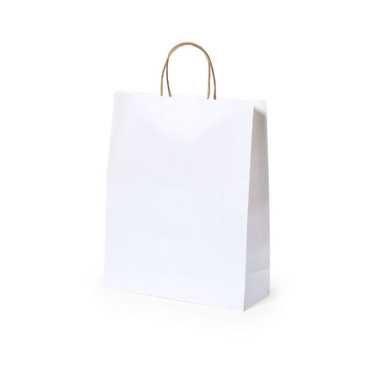 Sac de la ligne Nature, en papier recyclé finition blanc 100g/m2, avec anses courtes renforcées de couleur naturelle et soufflet. Résistance jusqu'à 6 kg de poids. (couleur blanche)