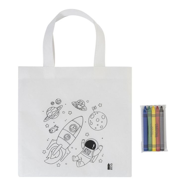 Mini sac de courses en RPET non tissé à colorier avec 5 crayons