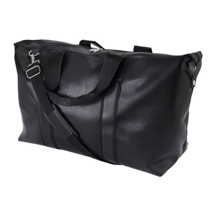 Sac week-end en cuir avec fermeture zippée comprenant un compartiment, muni de poignées en cuir et d'une bandoulière en nylon.