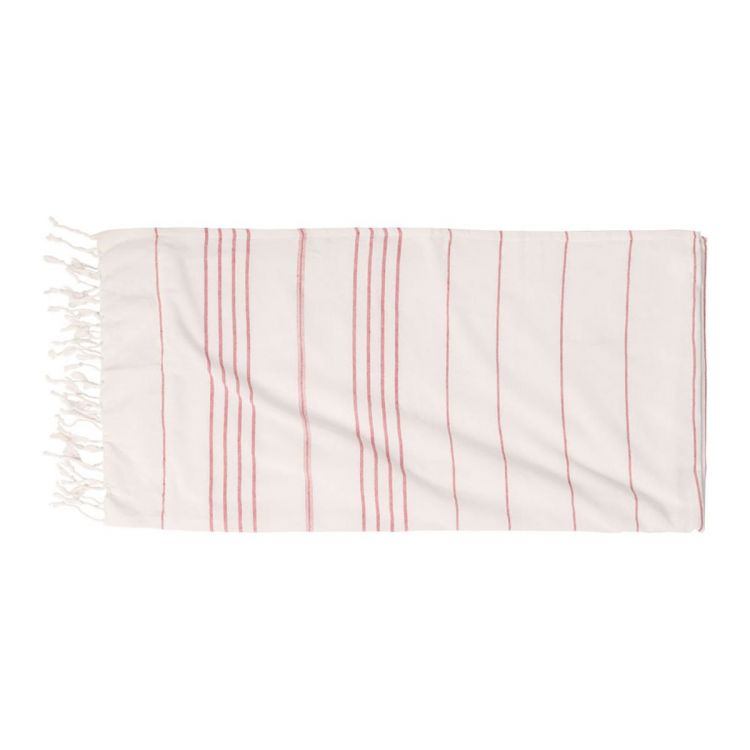 Serviette de plage paréo bicolore en polycoton. Mélange de 50 % de coton biologique et de 50 % de polyester, 280 g/m², de couleur rouge