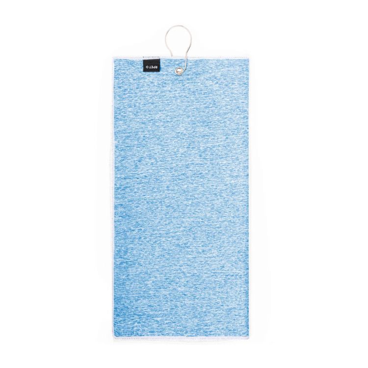 Serviette de golf fabriquée en RPET, absorbante et douce, mesurant 40x60 cm. Au centre, elle intègre un anneau renforcé et un mousqueton d’attelage, tous deux en acier inox. Avec badge RPET en étiquette.Le matériau RPET est fabriqué à partir de plastique recyclé, ce qui favorise la réutilisation des déchets plastiques et contribue à la durabilité de la planète.