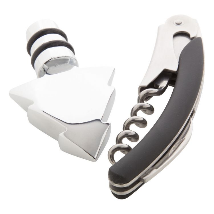 Set à vin avec sommelier et stoppeur en forme de sapin de Noël. Livré dans une boîte cadeau noire
