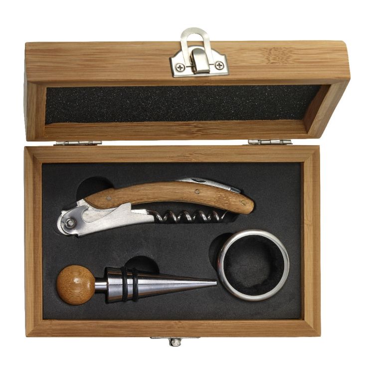 Set à vin de 3 pièces dans un coffret en bambou.