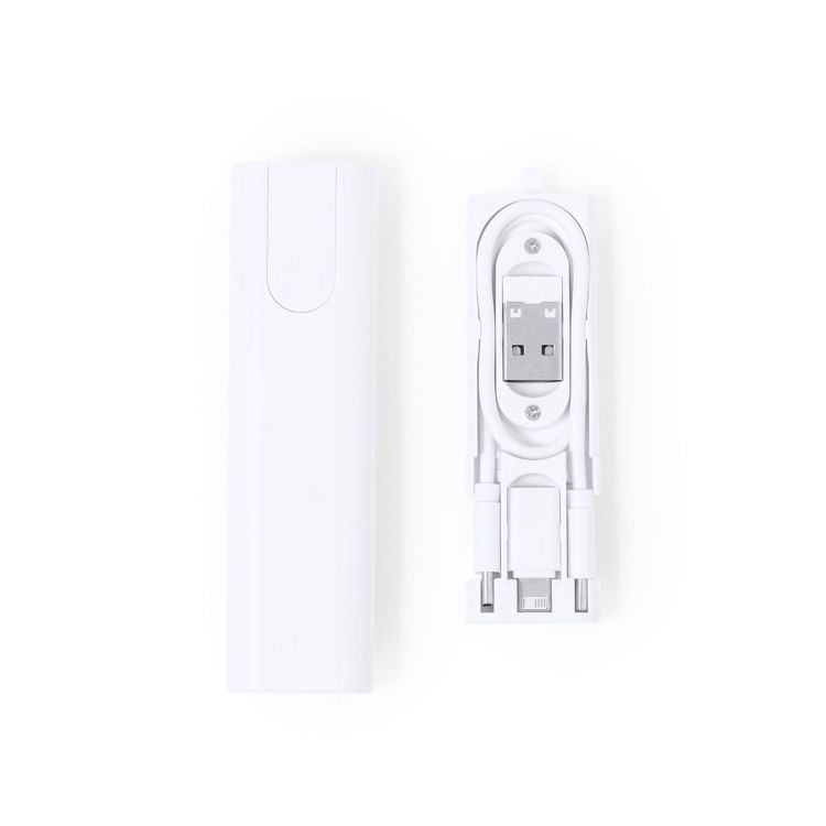 Ensemble complet de câbles chargeurs fabriqués en ABS robuste. Présentés dans un boîtier compact fabriqué en ABS résistant blanc, avec support pour smartphone intégré. Inclut le câble de chargement et de synchronisation, adapté au transfert de données et à plusieurs connexions : Micro USB, Type C et Lightning ; éjecteur SIM inclus. 5V DC 3A. Présenté dans une boîte de conception kraft. (couleur blanche)