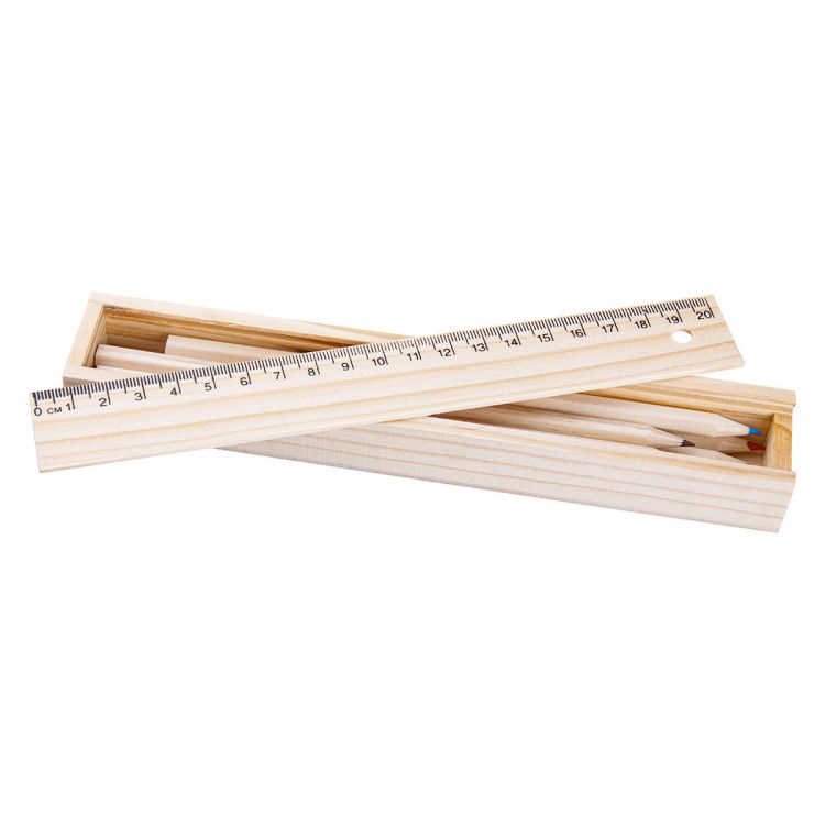 Set de coloriage (6 pcs) dans boîte en bois avec règle de 20 cm