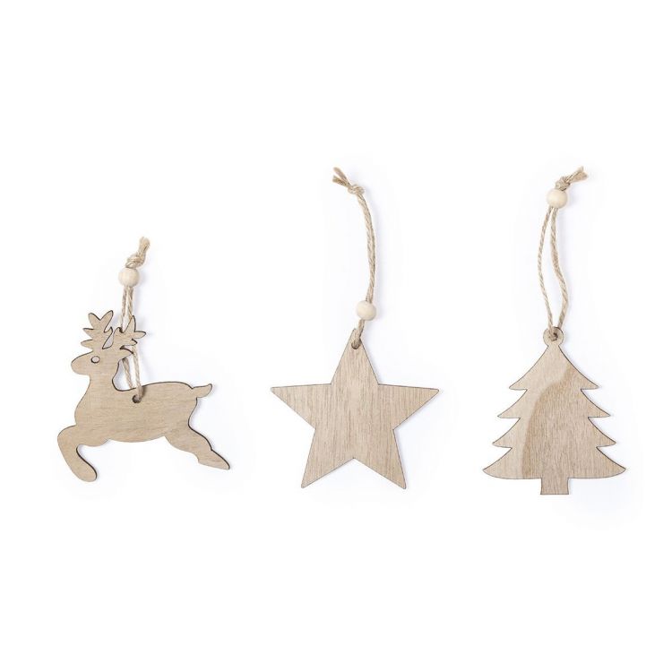 Ligne Nature Set de 3 figurines de Noël à suspendre, en bois au toucher doux. Ficelle en jute avec accessoire de réglage. Comprend un renne, une étoile et un sapin de Noël. Présenté dans un sac individuel, avec carton intérieur de couleur naturelle. (couleur naturel)